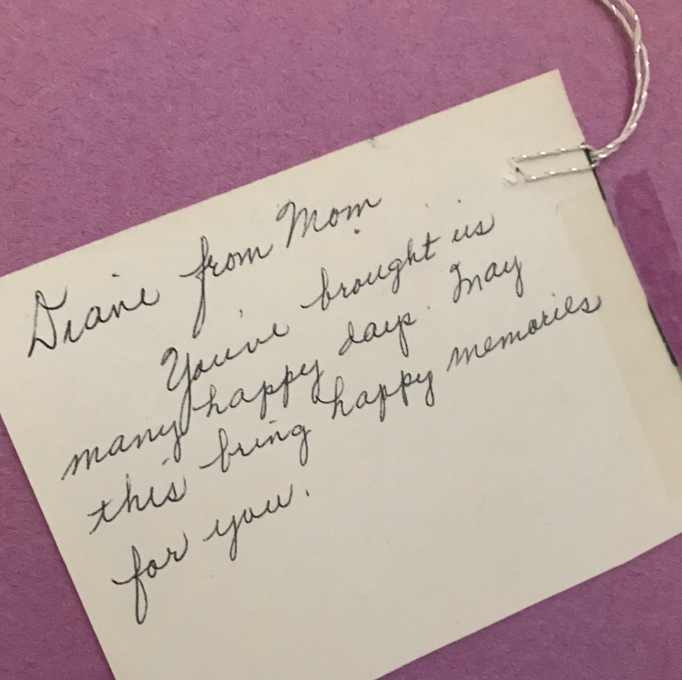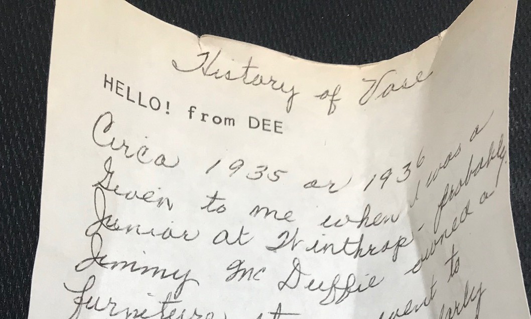 After my mom passed away, I found so many “memories” that she packed away in her things. A vase, for instance. Not one I would have kept, frankly, but when I looked inside of it, I had found a handwritten note. The note, written in my elderly mom’s beautiful cursive handwriting, gave the history of the vase, which she had been given around 1935. The note also told the history of other items my mom had saved that had belonged to her mom. A definite memory hoarder keepsake.