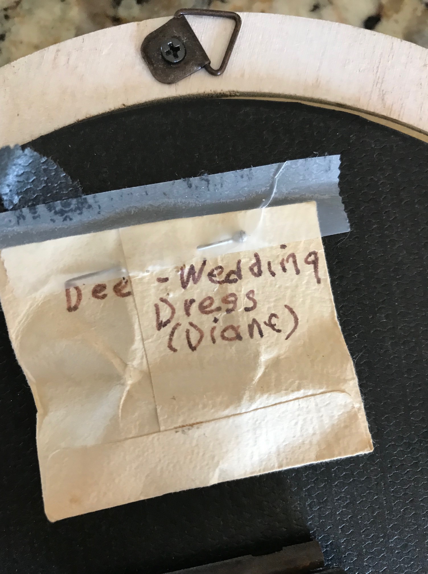 Later, when I was packing up her photos, I was looking at one she had on display in a large ceramic frame. It was my wedding photo. But true to my mom, it wasn’t just a photo in a frame. Taped to the back was a tiny bag with something inside of it. It was a piece of my wedding gown! Ahhh.